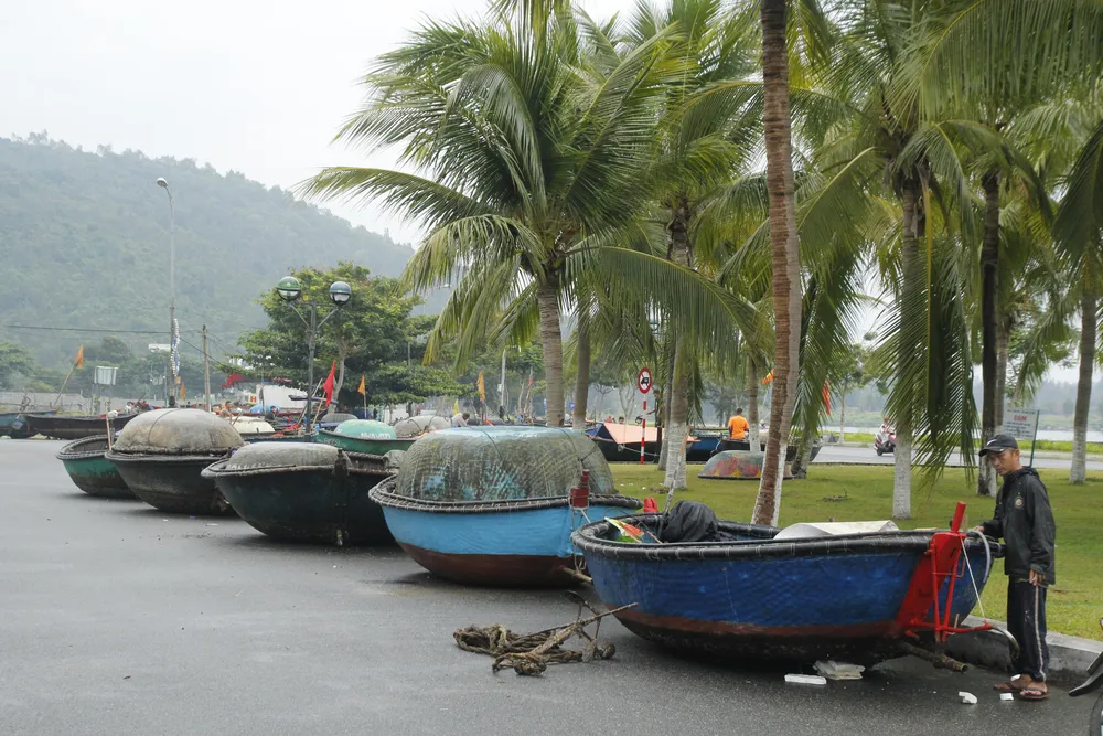 Tại Bãi ngang phường Thọ Quang người dân hối hả đưa ngư lưới cụ cùng thúng ghe vào bờ. Ngay từ 5 giờ sáng, ông Đinh Văn Xô đã có mặt cùng các bạn thuyền tranh thủ đưa thuyền vào bờ.