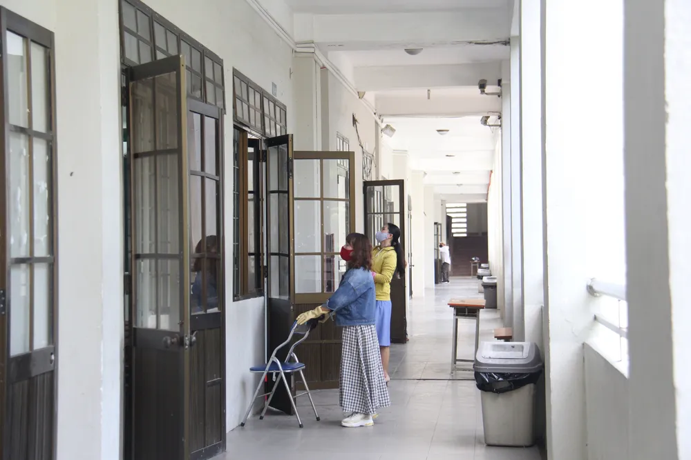 Công tác vệ sinh được chú trọng bởi việc giãn cách tại Trường THPT Phan Châu Trinh còn khó khăn