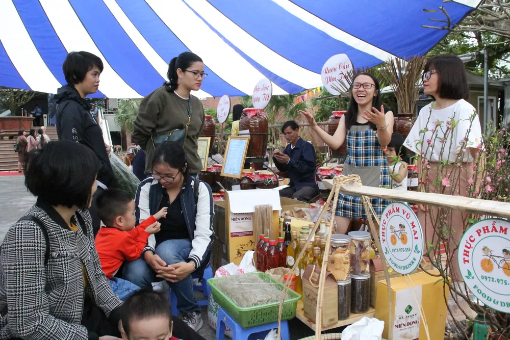 Một trong những điểm nhấn của phiên chợ ngày tết là các sản phẩm đặc trưng của nhiều địa phương, chủ yếu là đến từ vùng Quảng Nam- Đà Nẵng. Cụ thể như: nước mắm Nam Ô, bánh khô mè Cẩm Lệ, bánh tráng Túy Loan...