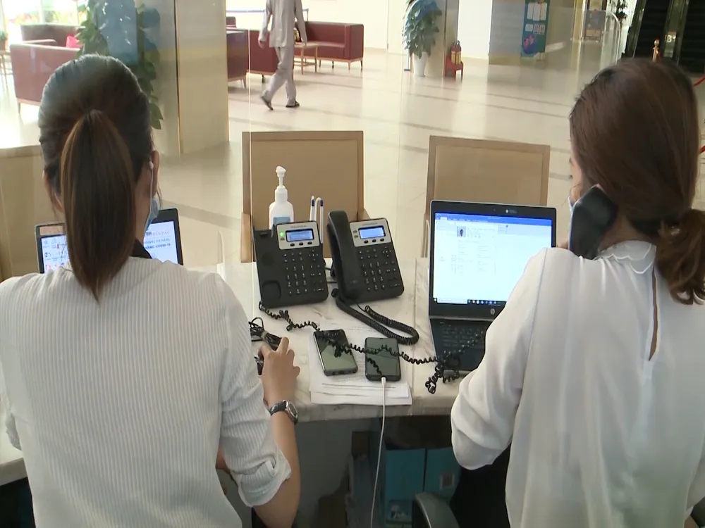 Nhân viên y tế hướng dẫn bệnh nhân khai báo y tế và đảm bảo giãn cách
