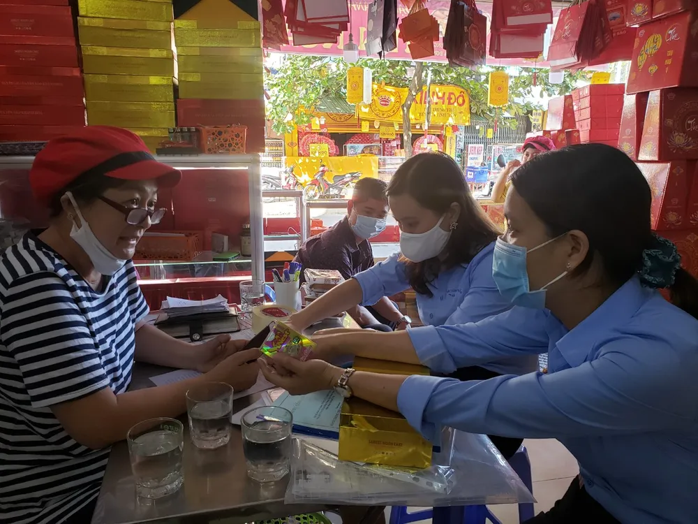 Tại mỗi điểm kiểm tra, sau khi hoàn thành việc kiểm tra các thủ tục hành chính, đoàn công tác sẽ lấy mẫu ngẫu nhiên một vài sản phẩm của cửa hàng để dán nhãn xét nghiệm