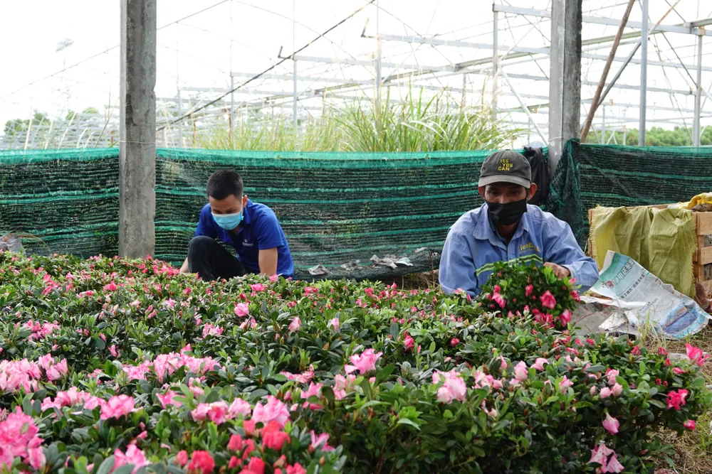 Cũng vì vậy, năm nay, anh Trần Đình Lợi (SN 1978), nông dân tại làng hoa Vân Dương đã giảm số lượng đáng kể hoa chậu lớn như cúc pha lê, cúc đại đóa... Tập trung đầu tư vào hoa trang trí tiểu cảnh, anh Lợi nhận chăm sóc gần 30.000 chậu đỗ quyên, dạ yến thảo,... theo đơn đặt hàng.