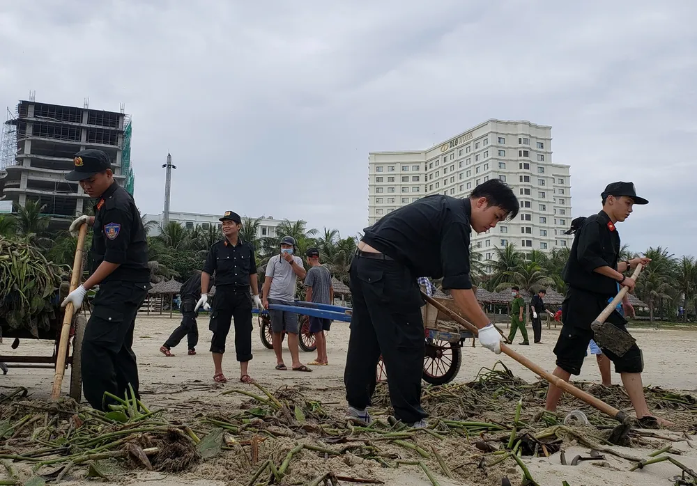 Theo đó, Bộ Chỉ huy Bộ đội Biên phòng TP Đà Nẵng chỉ đạo các đơn vị trực thuộc bố trí lực lượng, phương tiện để phối hợp, hỗ trợ UBND các quận tổng dọn vệ sinh ở các khu vực ven biển và bãi biển.