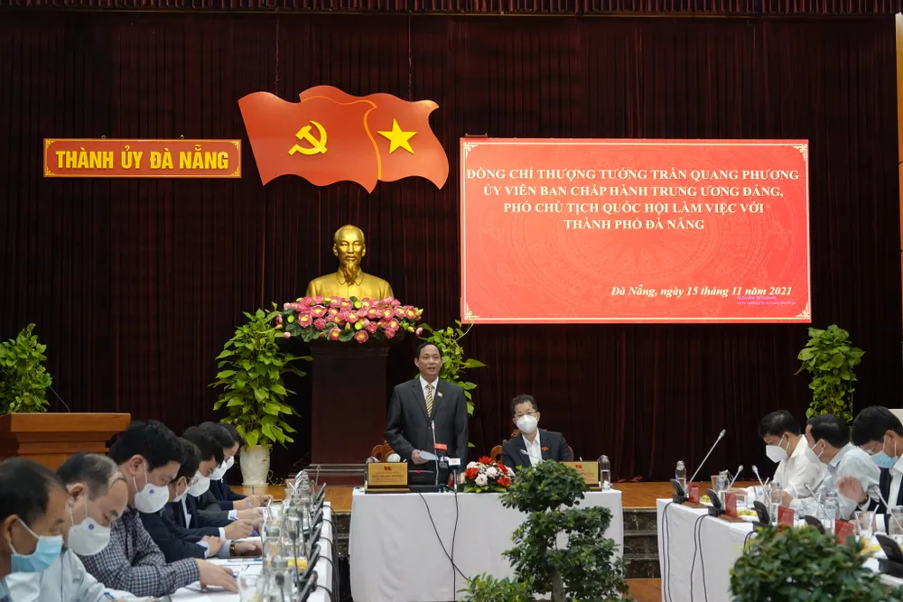 Tại buổi làm việc, Thượng Trần Quang Phương ghi nhận những nỗ lực phòng chống dịch Covid-19, đảm bảo sức khỏe của nhân dân, đồng thời chia sẻ khó khăn của địa phương do dịch bệnh kéo dài. Trong bối cảnh dịch bệnh còn phức tạp, TP Đà Nẵng thực hiện tốt mục tiêu kép, vừa chống dịch vừa khôi phục sản xuất; thu hut đầu tư đạt kết quả tốt, cấp phép cho 18 đầu tư trong nước và 31 dự án FDI là 1 sự nỗ lực; sản xuất nông lâm ổn định, kim ngạch xuất nhập khẩu tăng, trong đó xuất khẩu phần mềm với 7% được coi là điểm sáng cần thúc đẩy, le lói mô hình kinh tế số đổi mới sáng tạo khoa học công nghệ.