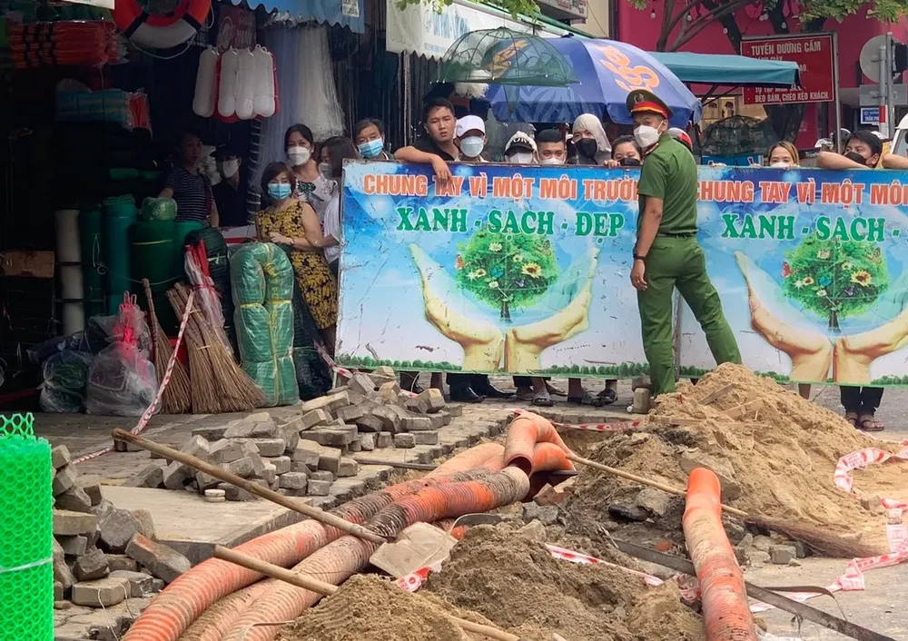 Trong lúc đào sửa chữa đường dây cáp điện tại nắp cống phía trước ki ốt 24 chợ Hàn (đường Hùng Vương, phường Hải Châu 1, quận Hải Châu), công nhân phát hiện một cánh tay người, chưa phân hủy.