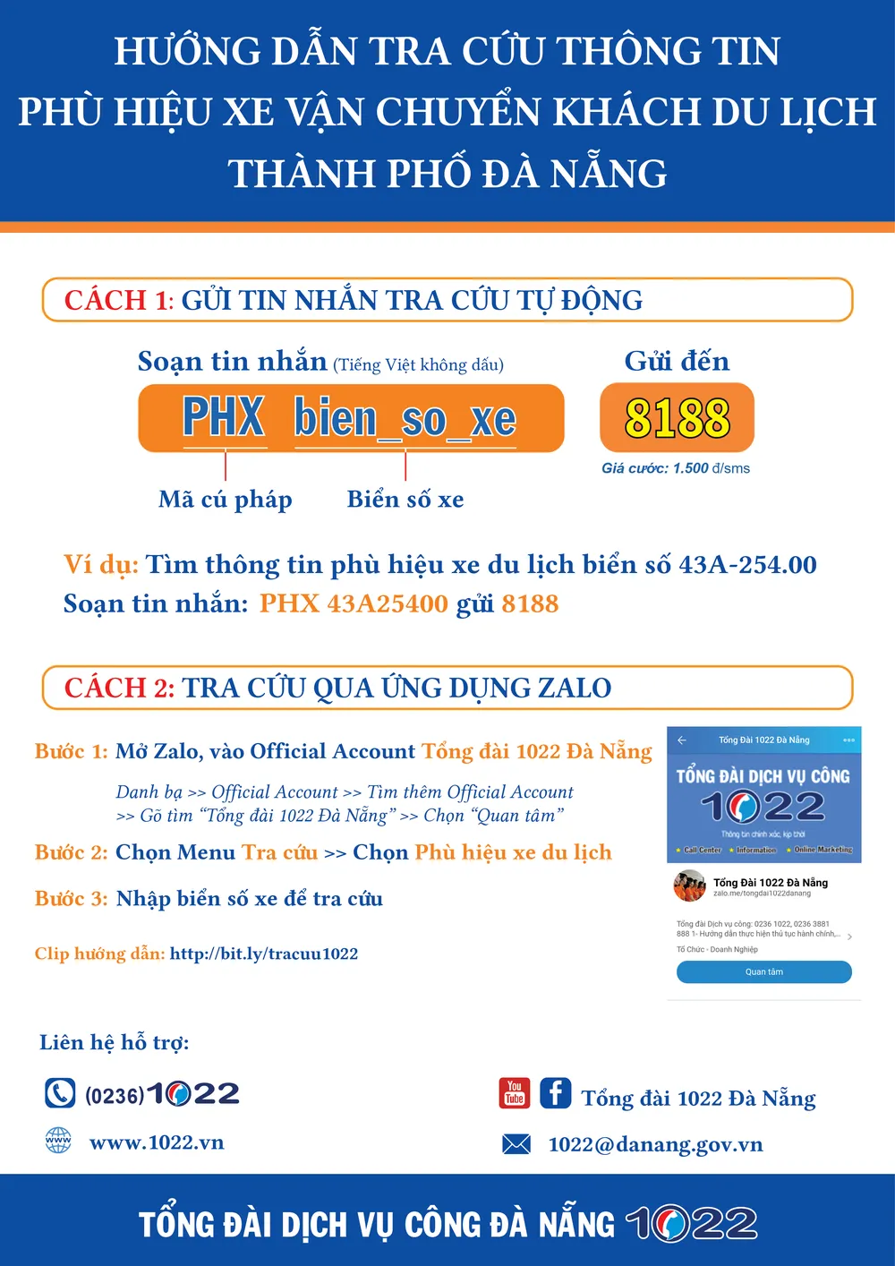 Để được giải đáp thông tin cũng như tư vấn, hỗ trợ sử dụng các tiện ích nêu trên, vui lòng liên hệ trực tiếp Tổng đài Dịch vụ công Đà Nẵng qua đầu số (0236) 1022, Cổng thông tin dịch vụ công Đà Nẵng hoặc qua các kênh mạng xã hội Zalo, Facebook, Youtube của tổng đài.