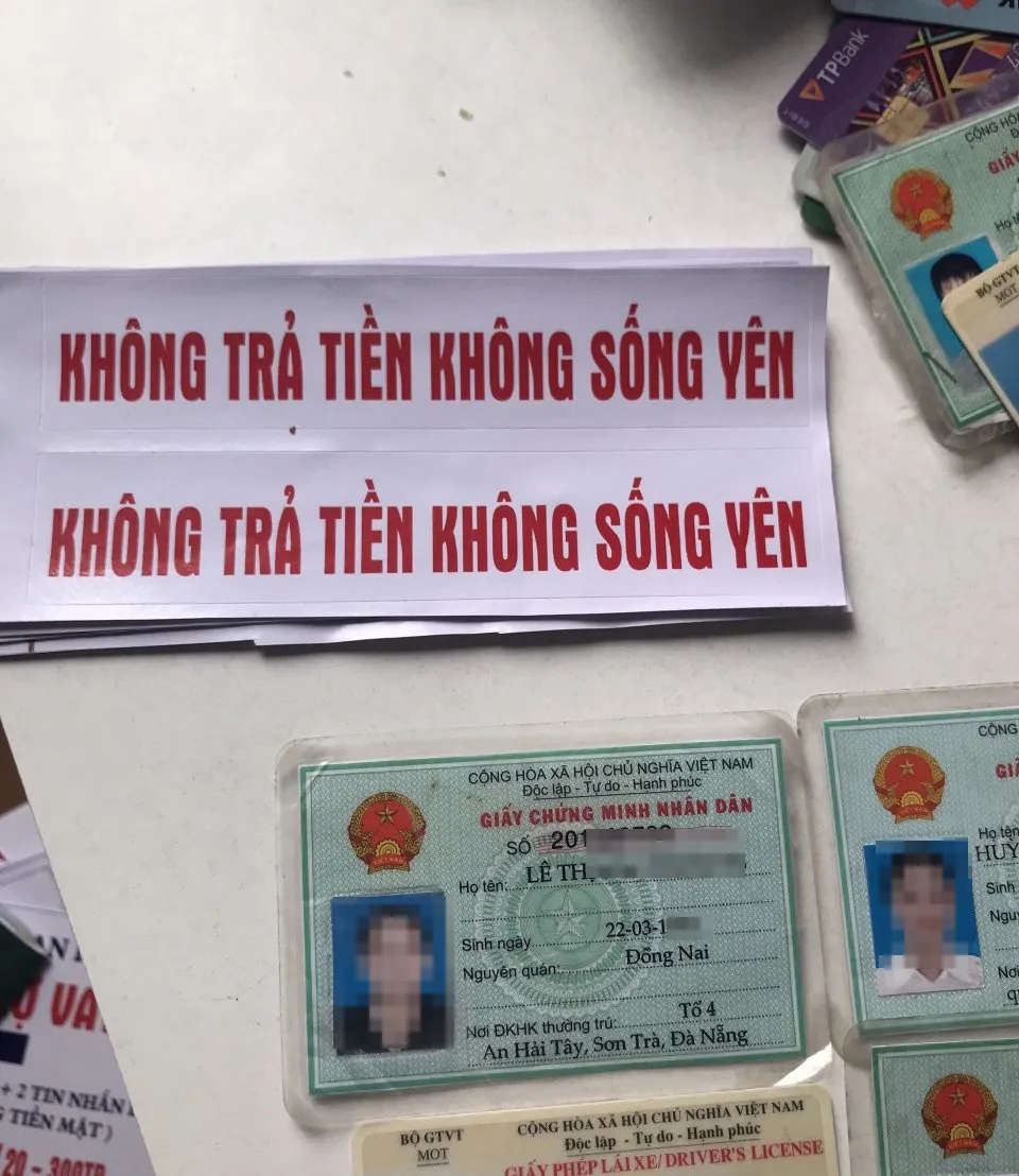 Các đối tượng này vào Đà Nẵng hoạt động độc lập, cầm đầu 3 đường dây cho vay nặng lãi riêng biệt. Nếu người vay không trả tiền, các đối tượng sẽ chửi bới, đe dọa, dán decal màu đỏ, in dòng chữ “không trả tiền, không sống yên” trước cửa nhà hoặc nơi buôn bán của người vay tiền để đe dọa đòi nợ.