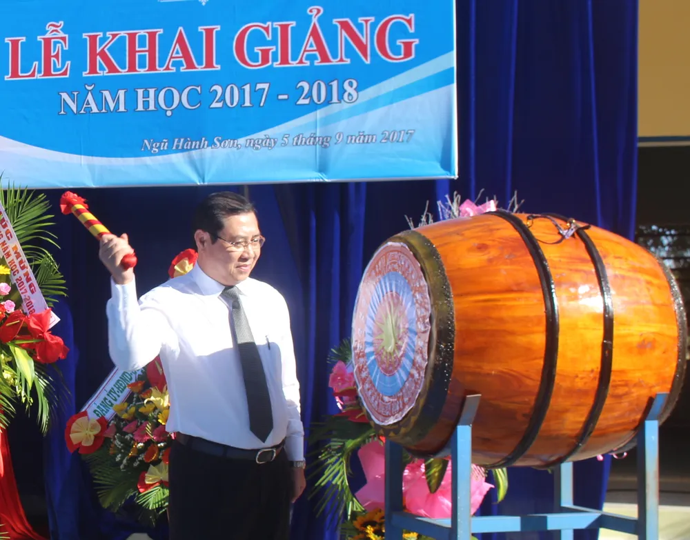 Chủ tịch UBND TP Đà Nẵng Huỳnh Đức Thơ đánh trống khai trường tại Trường Tiểu học Tô Hiến Thành