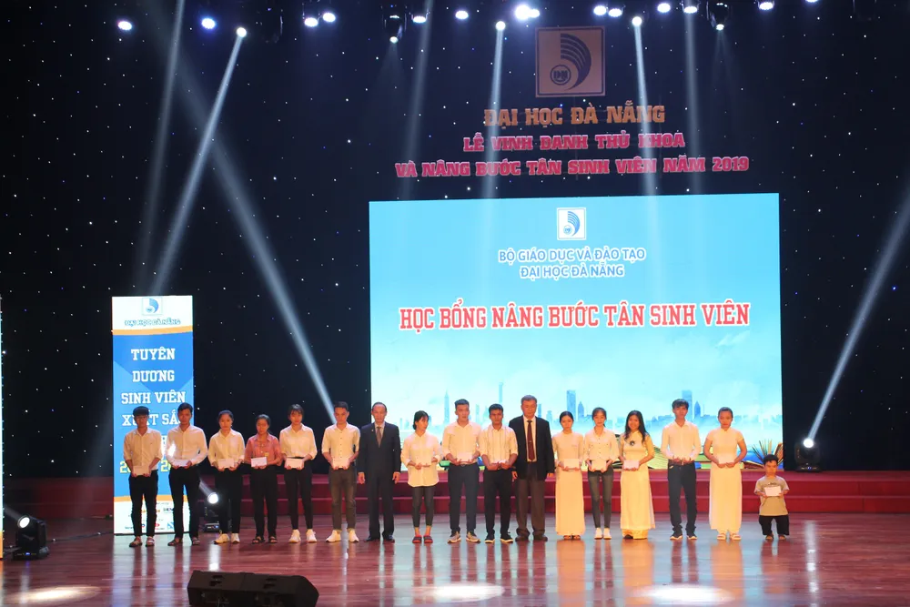 Tại chương trình, ĐHĐN đã vinh danh 10 thủ khoa, trong đó có 1 thủ khoa ĐHĐN và 9 thủ khoa của các trường, đơn vị; khen thưởng 10 sinh viên được tuyển thẳng vào ĐHĐN; tuyên dương 35 sinh viên xuất sắc năm học 2018 -2019.