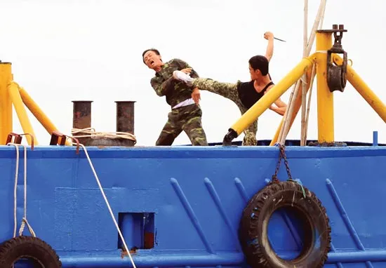 Chiến sĩ Đặc công nước dũng mãnh chiến đấu với tội phạm trên biển.