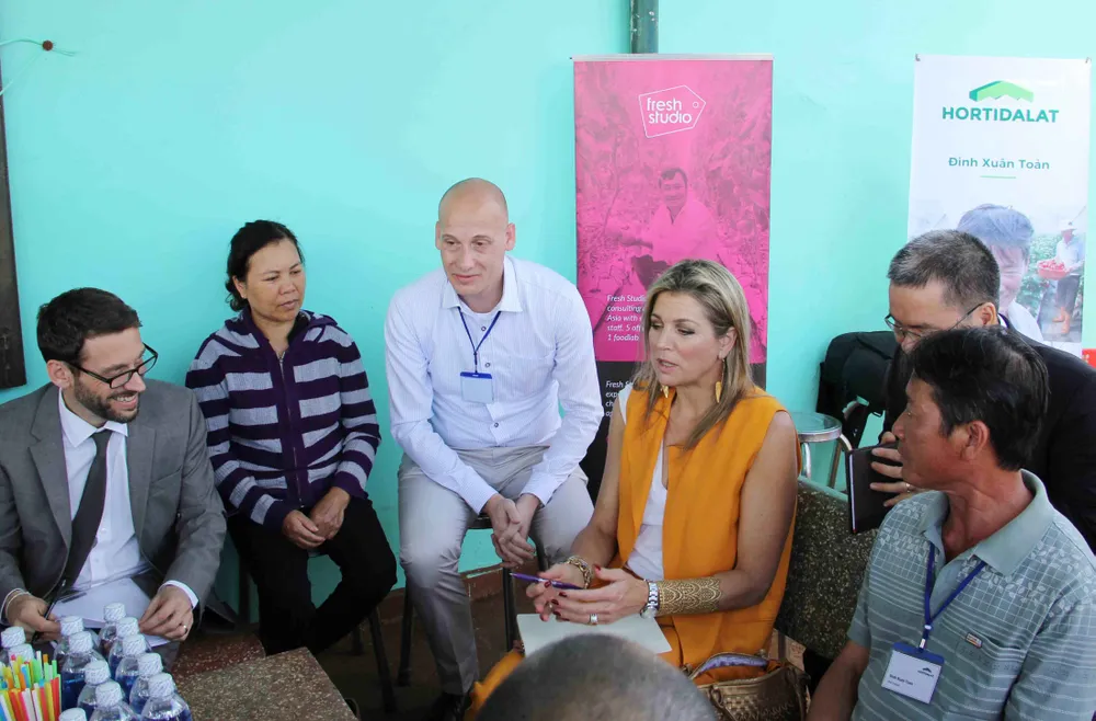 Cùng ngày, Hoàng hậu Hà Lan Máxima đã đến thăm một cửa hàng kinh doanh rau, quả tại TP Đà Lạt.