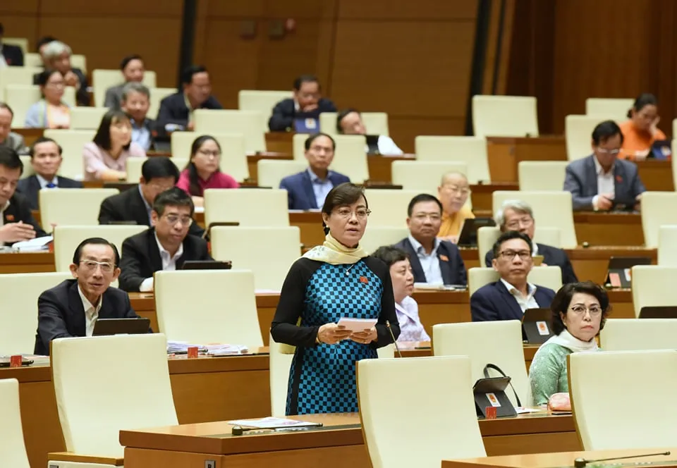 Đại biểu Nguyễn Thị Mai Hoa - Đoàn đại biểu Quốc hội tỉnh Đồng Tháp, phát biểu tại phiên thảo luận. Ảnh: Quochoi.vn