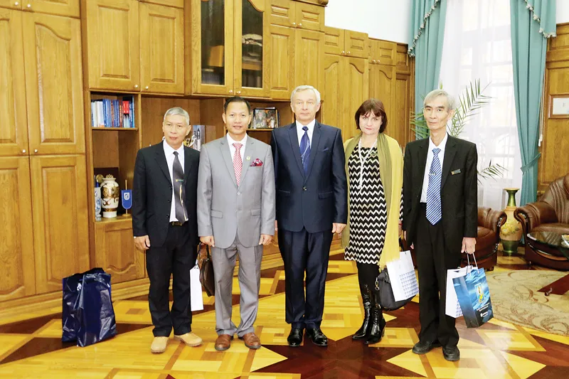 Ngày 27/10/2016, TS. Cao Việt Hiếu dẫn đầu đoàn đại biểu trường Đại học Bình Dương tham dự lễ kỷ niệm 95 năm thành lập Đại học Quốc gia Belarus. Đoàn chụp ảnh lưu niệm với GS.VS Ablameyko Sergey - Hiệu trưởng Đại học Quốc gia Belarus