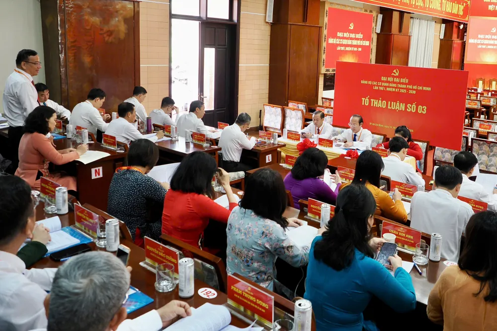 Đại hội chia thành 6 tổ thảo luận, tiếp tục thảo luận, đóng góp ý kiến dự thảo các văn kiện Đại hội đại biểu toàn quốc lần thứ XIV của Đảng, văn kiện đại hội đại biểu Đảng bộ TPHCM và Đảng bộ các cơ quan Đảng TPHCM lần thứ I, nhiệm kỳ 2025 – 2030.