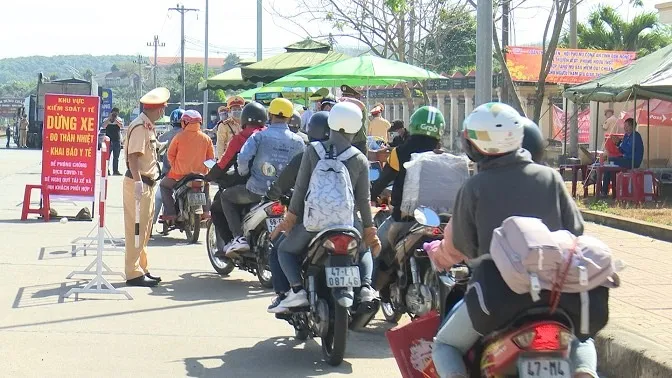 Các chốt kiểm dịch tỉnh Đắk Nông kiểm tra thân nhiệt người dân về từ TPHCM