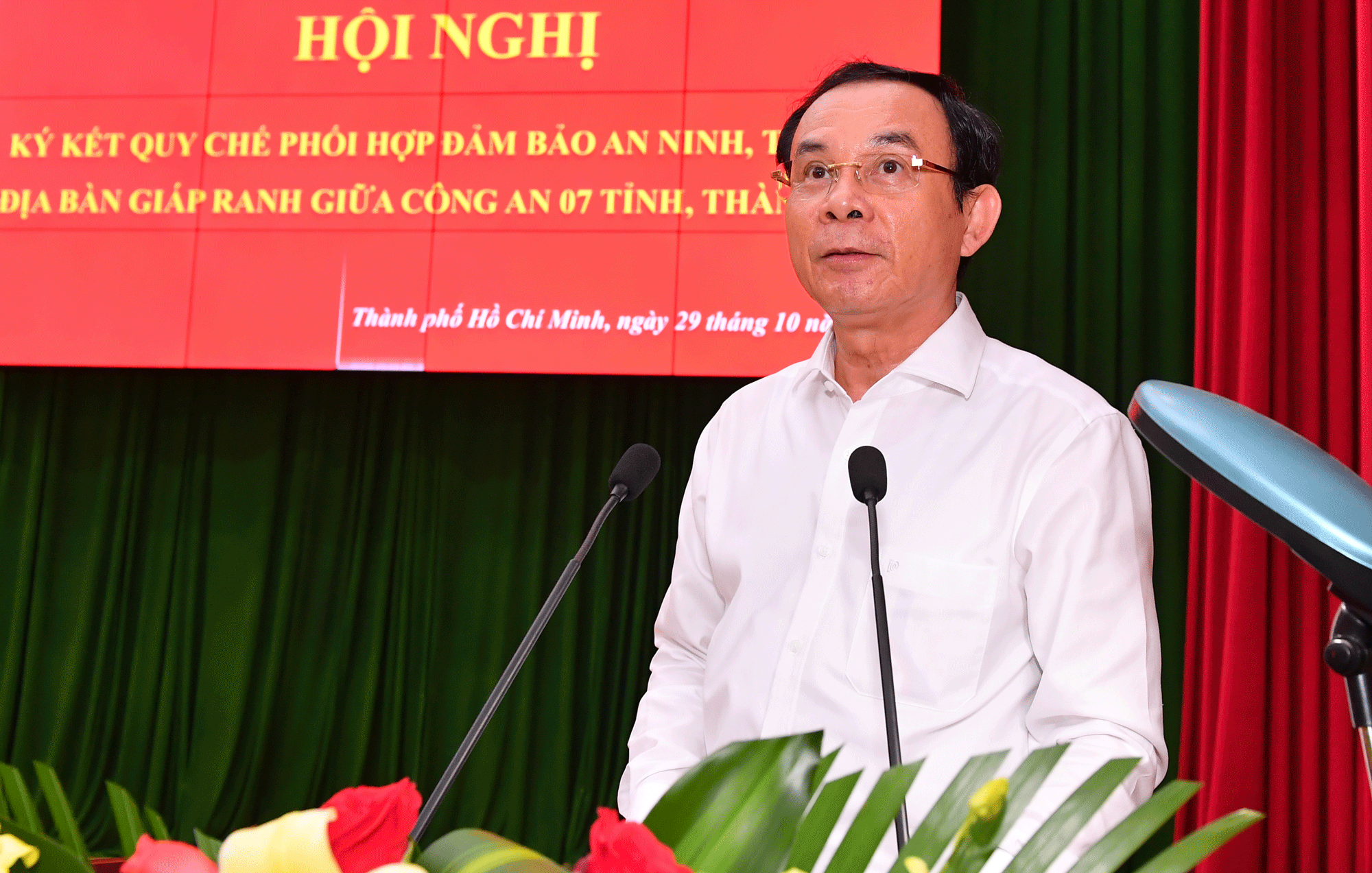 Phát biểu tại hội nghị, thay mặt lãnh đạo TPHCM, đồng chí Nguyễn Văn Nên, Bí thư Trung ương Đảng, Bí thư Thành ủy TPHCM, đánh giá cao việc ký kết Quy chế phối hợp đảm bảo an ninh, trật tự địa bàn giáp ranh giữa TPHCM, Bà Rịa - Vũng Tàu, Đồng Nai, Bình Dương, Tây Ninh, Long An, Tiền Giang; xem đây là việc cần thiết và phù hợp trong tình hình hiện nay, có ý nghĩa quan trọng, thiết thực góp phần thực hiện thắng lợi các mục tiêu, chỉ tiêu của Nghị quyết Đại hội đại biểu Đảng bộ của 7 tỉnh, thành phố nhiệm kỳ 2020-2025.
