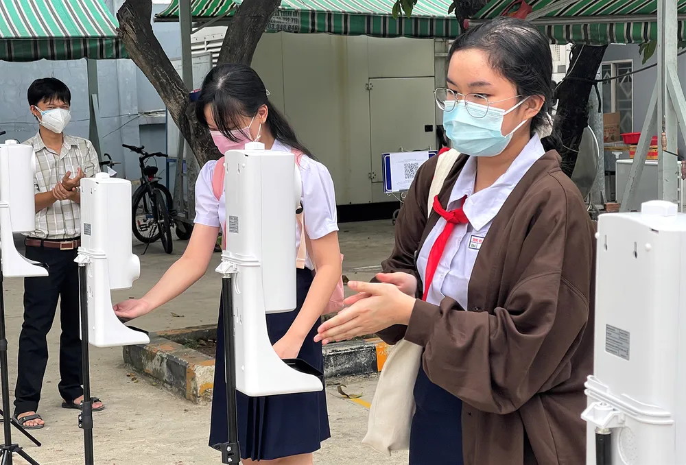 Các trường đều trang bị máy đo thân nhiệt, sát khuẩn tay hoặc máy quét mã QR ngay tại cổng trường; bố trí phòng chờ cho học sinh nghi mắc Covid-19 (F0), học sinh tiếp xúc gần với F0 và phòng cách ly tạm thời cho F0.