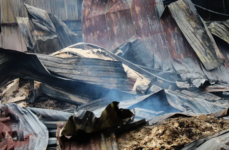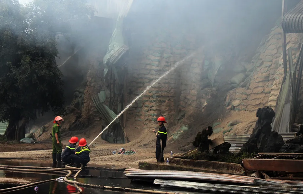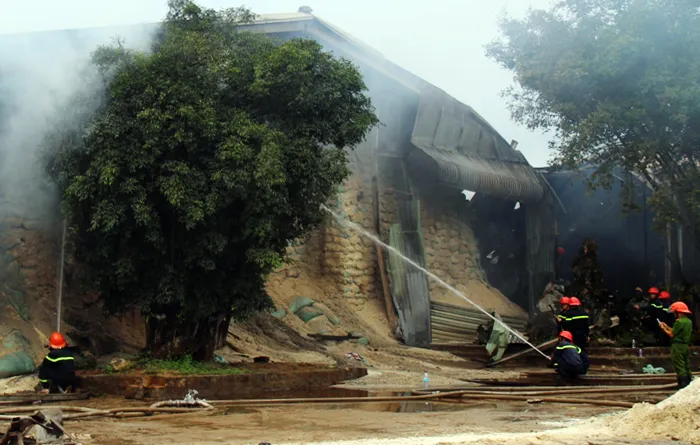 Đến 9 giờ 30 cùng ngày, tại kho chứa nông sản khói bốc lên nghi ngút, bao trùm kho xưởng với diện tích 5.000m²; khói đen nghi ngút tỏa khắp bầu trời; trong khi đó lực lượng chữa cháy vẫn đang nỗ lực bơm nước để khống chế đám cháy đang âm ỉ ngún từ hàng tấn bột mì, bã mì…