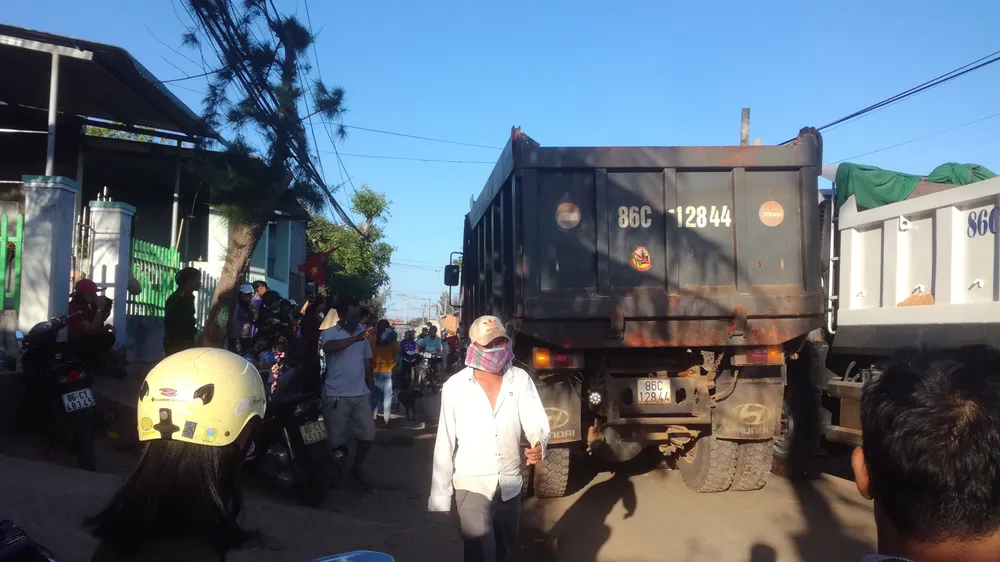Người dân bức xúc chặn xe dự án lấn biển tại Phan Thiết vì cho rằng xe chạy ẩu, gây ô nhiễm môi trường và tiếng ồn