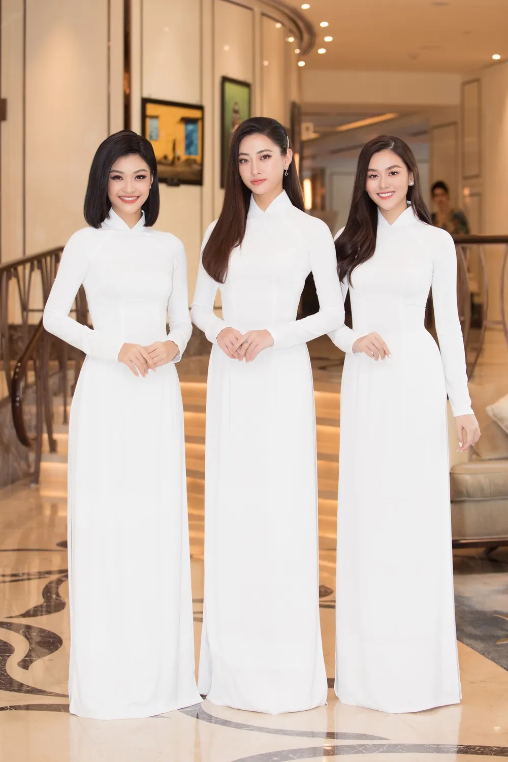 Top 3 Hoa hậu Việt Nam 2018 khoe sắc trong tà áo dài trắng đồng điệu nhưng mỗi người vẫn toát lên một nét đẹp riêng biệt.