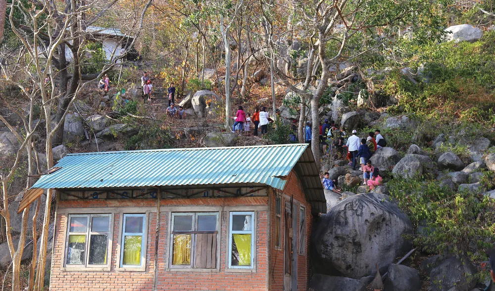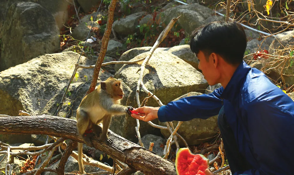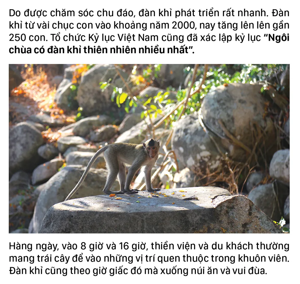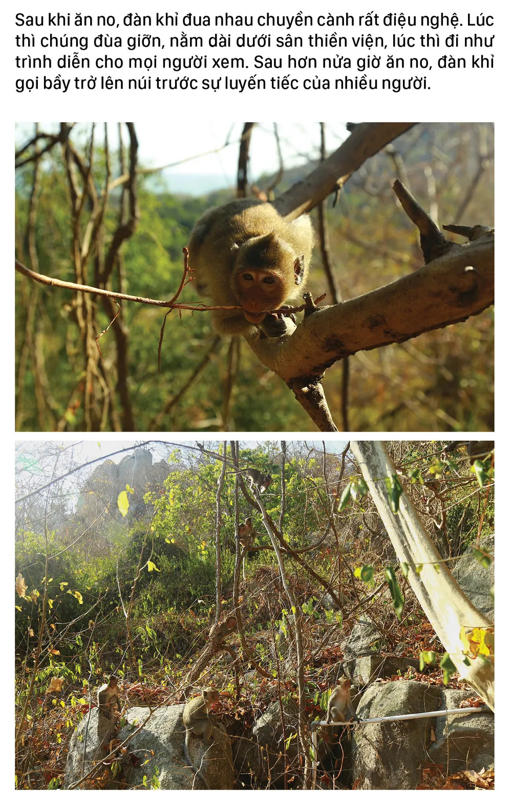 Đàn khỉ sống thân thiện với con người dưới chân núi Kỳ Vân