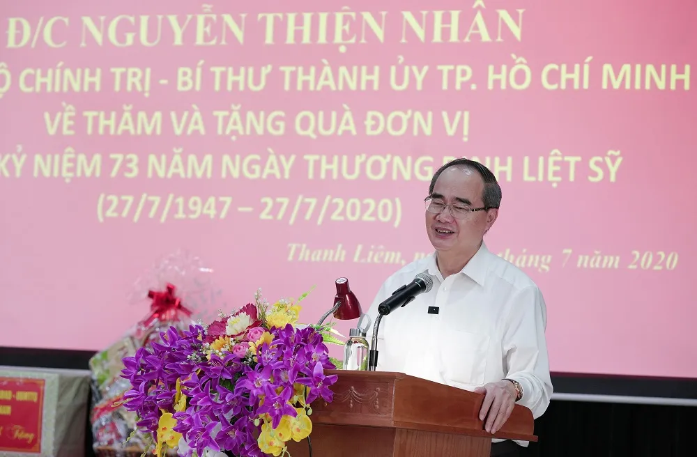 Tại Hà Nam, đến thăm và tặng quà cho thương binh, bệnh binh tại Trung tâm Điều dưỡng thương binh huyện Duy Tiên, Trung tâm Điều dưỡng thương binh huyện Kim Bảng và Trung tâm Nuôi dưỡng thương binh nặng và điều dưỡng người có công tỉnh Hà Nam, Bí thư Thành ủy TPHCM Nguyễn Thiện Nhân thay mặt Đảng bộ, chính quyền và nhân dân TPHCM bày tỏ lòng biết ơn, sự tri ân tới những thương binh, bệnh binh đang được điều trị tại đây. Đồng chí Nguyễn Thiện Nhân cho biết, những ngày này, TPHCM cũng như cả nước đều nhớ về sự đóng góp, hy sinh lớn lao của các chiến sĩ Quân đội Nhân dân Việt Nam phụng sự đất nước qua các thời kỳ, đặc biệt là gia đình các chiến sĩ, thương binh, bệnh binh, gia đình liệt sĩ trên mọi miền đất nước.
