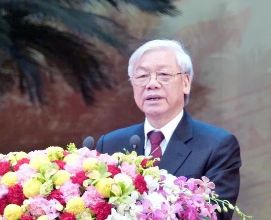 Tổng Bí thư Nguyễn Phú Trọng phát biểu tại lễ kỷ niệm. Ảnh: Trần Lưu