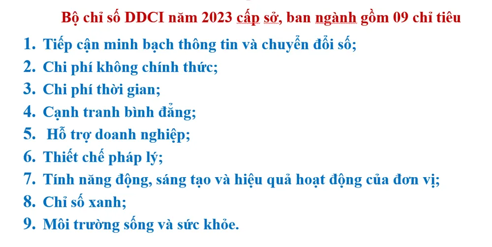 Năm 2023, TPHCM tiếp tục triển khai đánh giá DDCI với bộ chỉ số được tham vấn, ghi nhận ý kiến từ doanh nghiệp, chuyên gia, tư vấn độc lập để đảm bảo tính toàn diện, đa chiều. Bộ chỉ số năm nay đề xuất tiêu chí mới, như chỉ số xanh, chỉ số sức khỏe và môi trường. Thành phố kỳ vọng những tiêu chí mới này sẽ góp phần nâng cao nhận thức của toàn hệ thống chính trị thành phố và cộng đồng doanh nghiệp về phát triển bền vững.