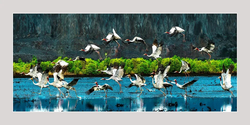 Sếu đầu đỏ được xem là loài lớn nhất trong họ nhà sếu, cũng là loài chim biết bay cao nhất. Ảnh: TRƯƠNG THANH NHÃ