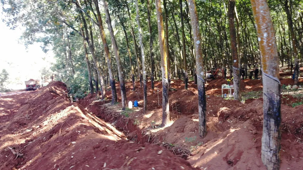 Phần lớn diện tích đào tìm thuộc đất nông trường cao su của Công ty TNHH MTV Cao su Lộc Ninh, dự kiến những ngày tới diện tích tìm kiếm sẽ được mở rộng lên đến 10.000m2, phải cắt bỏ khoảng 300 cây cao su.