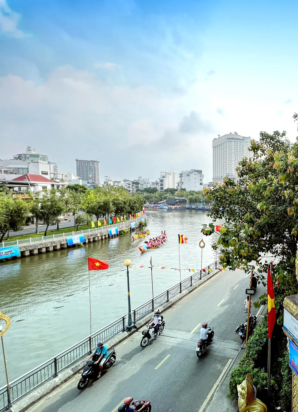 | Các đội tham gia lễ hội đua ghe ngo tập luyện trên kênh Nhiêu Lộc - Thị Nghè, TPHCM |