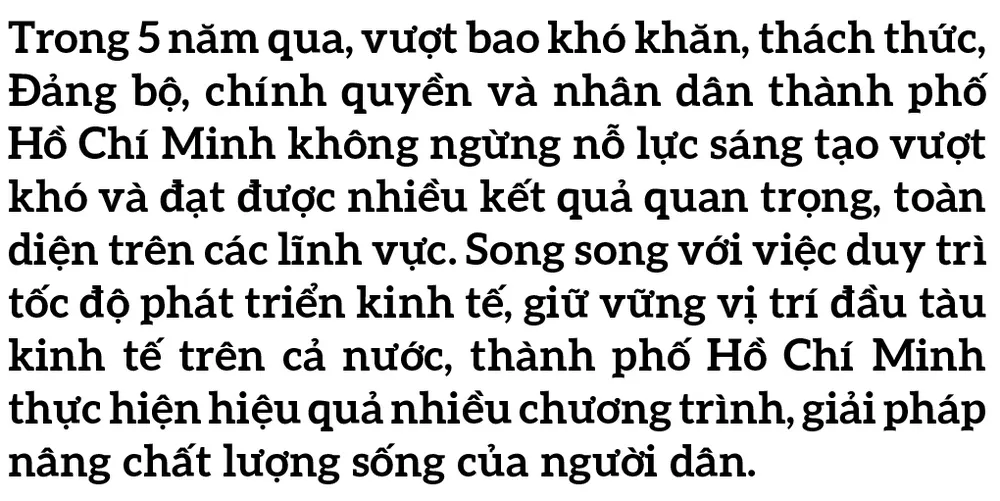 Tất cả những nỗ lực bền bỉ trên của Đảng bộ, Chính quyền TPHCM nhằm thúc đẩy phát triển kinh tế, vì cả nước, cùng cả nước; đồng thời hướng đến mục đích quan trọng khác là từng bước nâng cao chất lượng cuộc sống nhân dân, vì hạnh phúc của nhân dân!