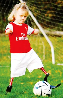 Cô bé 7 tuổi Ellie phải nhờ tới sự trợ giúp của đôi chân giả để tự do hoạt động và chạy nhảy trên sân. Mỗi tuần Ellie đều chơi bóng tại trường 1 lần. Cô bé rất hâm mộ đội tuyển Asernal. Năm 2005, các bác sĩ buộc phải cắt bỏ tay, chân của Ellie để cứu lấy mạng sống do mắc bệnh viêm màng não và nhiễm trùng máu. Ban đầu, cô bé không thể chạy trên đôi chân giả. Sau đó các nhà hảo tâm đã mua tặng Ellie đôi chân siêu nhẹ giá 10.000 bảng Anh.