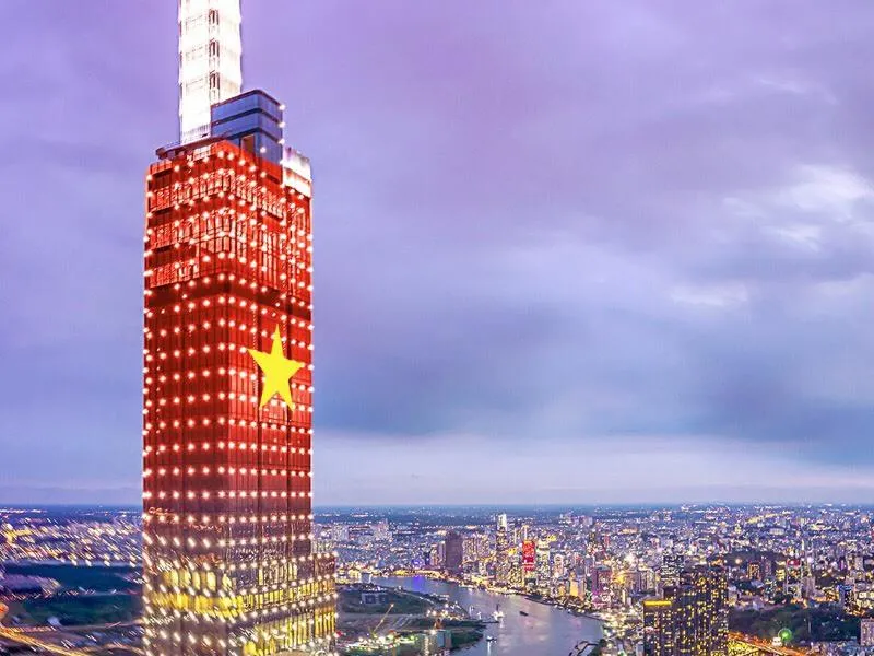 Ngắm cờ đỏ sao vàng khổng lồ và pháo hoa tại Vincom Center Landmark 81