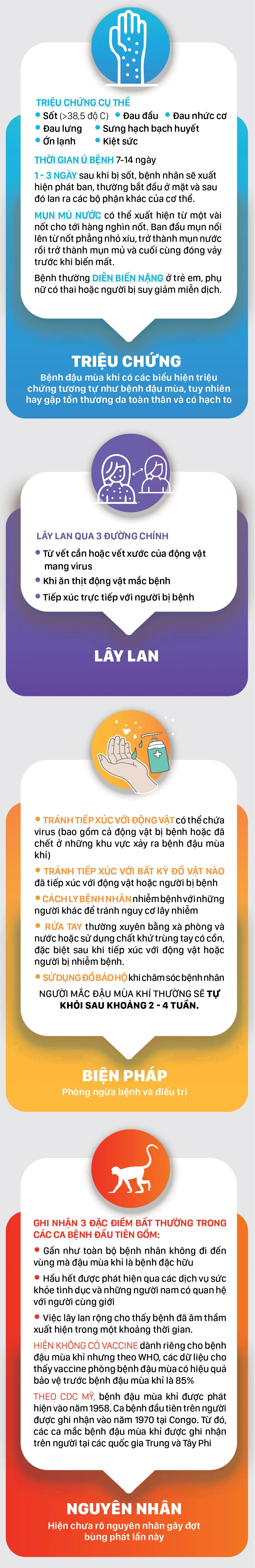 Bệnh đậu mùa khỉ do virus gây ra và thường ghi nhận phổ biến ở Tây và Trung Phi. Tuy nhiên, gần đây các ca bệnh đã xuất hiện tại các nước châu Âu và nhiều nước khác. Theo số liệu tính đến ngày 25-5 (giờ địa phương) của trang web ilpandacentrostudio.it của Anh, đã có349 ca mắc, trong đó có 260 ca xác nhận và 83 ca nghi mắc tại 22 quốc gia và vùng lãnh thổ.