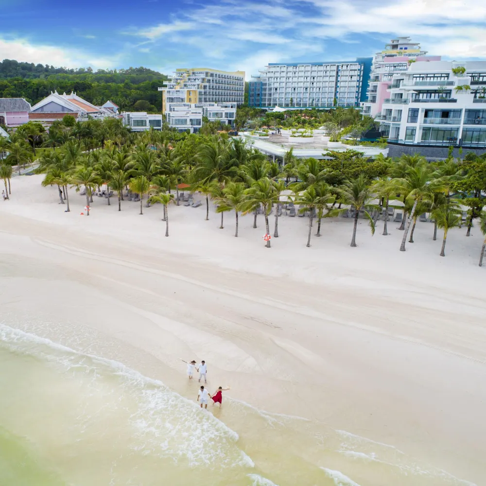 Cũng ở Nam Phú Quốc, du khách sẽ có những trải nghiệm hoàn hảo tại quần thể Bãi Kem. Dạo bước trên Bãi Kem – bãi biển duy nhất có bờ cát trắng mịn như kem và nghỉ dưỡng tại resort đẳng cấp 5 sao như JW Marriott Phu Quoc Emerald Bay được thiết kế bởi Bill Bensley – top 5 kiến trúc sư thế giới, hay khu condotel Premier Residences Phu Quoc Emerald Bay với thiết kế ruộng bậc thang độc đáo, và các villa Sun Premier Village Kem Beach Resort phong cách “làng biển” khác biệt.