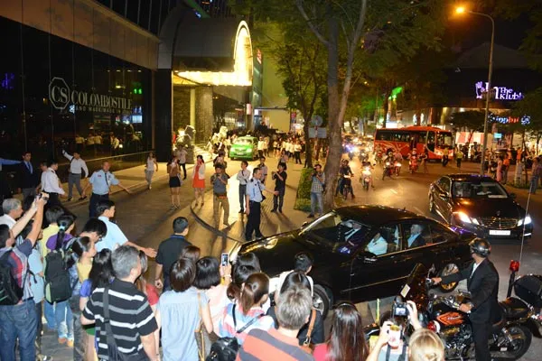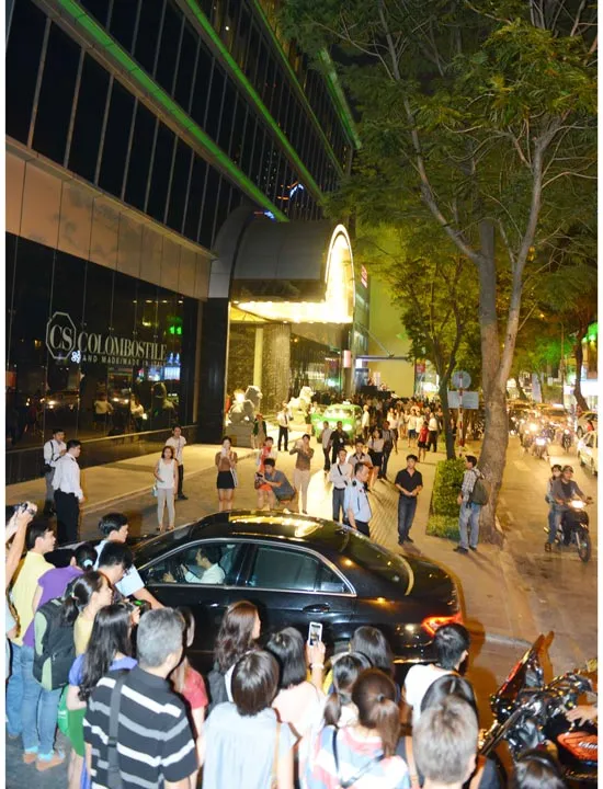Những phút chờ đợi mỏi mòn rồi cũng qua, đoàn xe đã ở phía trước, nhưng thật bất ngờ, đoàn lại ghé khách sạn đối diện, lên sân thượng để… thưởng ngoạn Sài Gòn hoàng hôn! Sau đó, đoàn tùy tùng mới sang điểm hẹn- Nhà hàng R&J theo phong cách Ý, ở Tòa nhà Times Square. Vẫn chiêu “dương đông kích tây”. Trong 3 lối vào tòa nhà này, với 1 lối qua The Long Bar ; 1 lối từ hầm xe đã được trải thảm theo yêu cầu, Beckham chọn lối vào ít ánh sáng nhất, có lẽ để… phòng ngừa các paparazzi.
