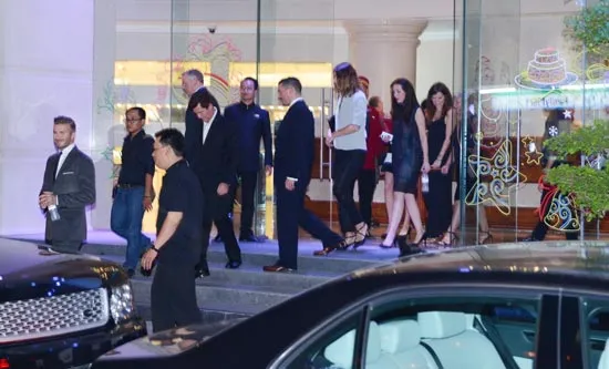 Beckham cùng các cộng sự đến điểm gặp gỡ báo chí. (Ảnh: Việt Dũng)