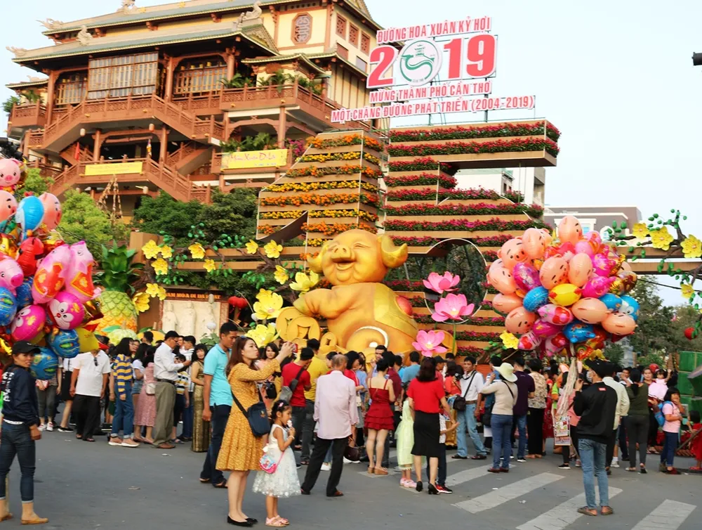 Đường hoa nghệ thuật là điểm nhấn của Cần Thơ mỗi khi xuân về trong mấy năm qua và năm nay tiếp tục là điểm đến hấp dẫn của nhiều người trong dịp Tết Kỷ Hợi 2019. Bên cạnh đó, tại làng du lịch Mỹ Khánh, khu du lịch sinh thái Ông Đề, khu vực Bến Ninh Kiều… cũng có rất đông du khách đến vui xuân.