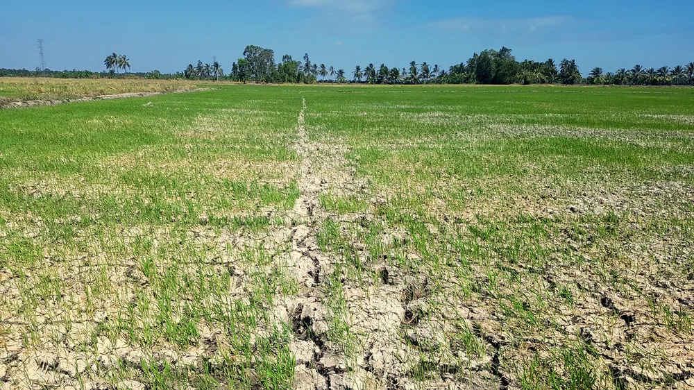 Cánh đồng sản xuất lúa vụ 3 hơn 3.500ha tại Long Phú, Sóc Trăng đang khô cằn, nứt nẻ