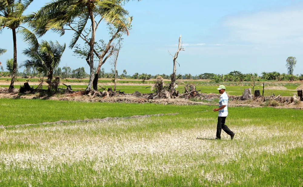 Ngành nông nghiệp huyện Long Phú, tỉnh Sóc Trăng cho biết, độ mặn ghi nhận ở các cống vẫn còn ở mức cao (khoảng 3,7‰ đến 3,8‰) nên chưa thể cho nước vào. Trong khi đó, hiện gió chướng (gió mùa Đông Bắc) đang hoạt động mạnh lên, nên thời điểm qua Tết sẽ làm đỉnh điểm của hạn mặn. Kéo theo đó, hơn 3.500 ha lúa lúa vụ 3 trên địa bàn sẽ mất trắng.