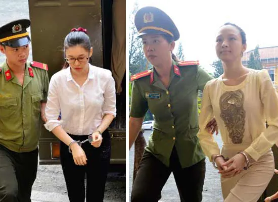 Bị cáo Phương Nga (trái) và Thùy Dung trong ngày xét xử sơ thẩm 21-9