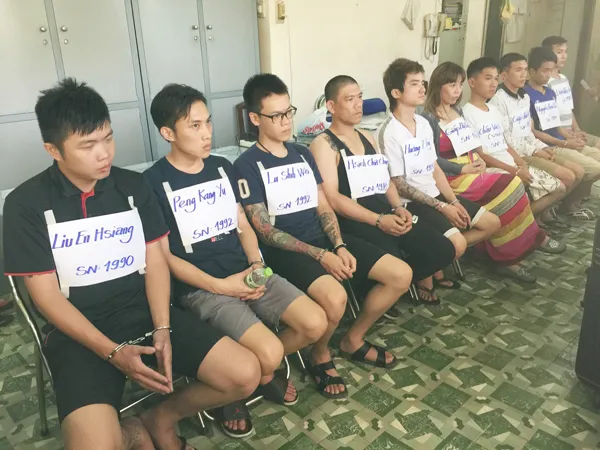 Các bị can gồm: Peng Kang Yu (sinh năm 1992, quốc tịch Đài Loan - Trung Quốc), Liu En Hsiang (sinh năm 1990, quốc tịch Đài Loan - Trung Quốc), Lu Shih Wei (sinh năm 1992, quốc tịch Đài Loan - Trung Quốc), Huang I Jen (sinh năm 1986, quốc tịch Đài Loan - Trung Quốc), Hsieh Chia Chun (sinh năm 1978, quốc tịch Đài Loan - Trung Quốc), Giáp Thị Diễm Thúy (sinh năm 1978, ngụ tỉnh Đồng Nai), Giáp Thanh Đạt (em Thúy, sinh năm 1985, ngụ tỉnh Đồng Nai), Nguyễn Hữu Minh Tuấn (sinh năm 1997, ngụ tỉnh Đồng Nai), Đặng Quốc Bảo (sinh năm 1993, ngụ tỉnh Đồng Nai), Nguyễn Thanh Bình(sinh năm 1994, ngụ tỉnh Đồng Nai), Đoàn Quốc Hiếu (sinh năm 1990, ngụ tỉnh Đồng Nai), Châu Vĩnh Huy (sinh năm 1994, ngụ TPHCM) và Nguyễn Hoàng Huy (sinh năm 1995, ngụ TPHCM) cùng bị đề nghị truy tố về tội "Lừa đảo chiếm đoạt tài sản".