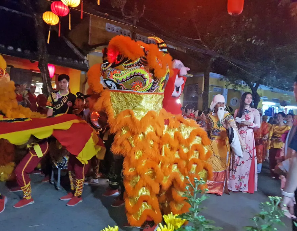 Đoàn rước “Sắc bùa chúc xuân” diễu hành khắp các tuyến phố trong phố cổ Hội An chúc xuân, chúc phúc cho người dân và du khách.