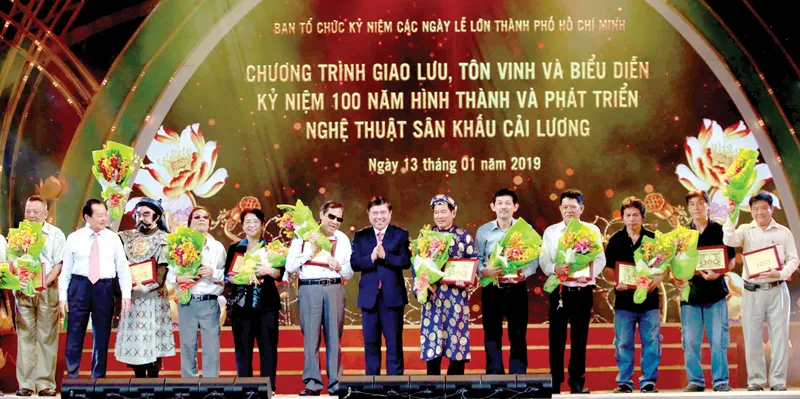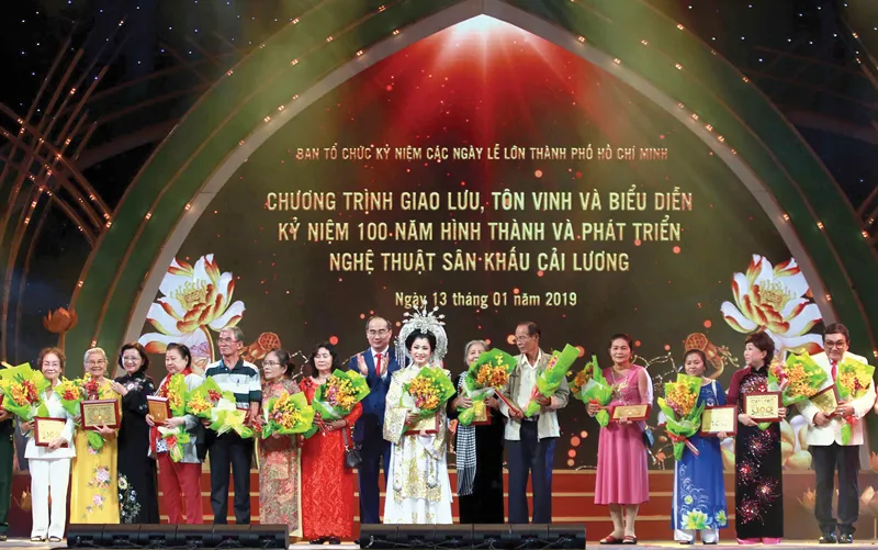 Tối 13-1, tại phố đi bộ Nguyễn Huệ (quận 1, TPHCM) đã diễn ra chương trình giao lưu, biểu diễn, tôn vinh 100 năm hình thành và phát triển nghệ thuật sân khấu cải lương.