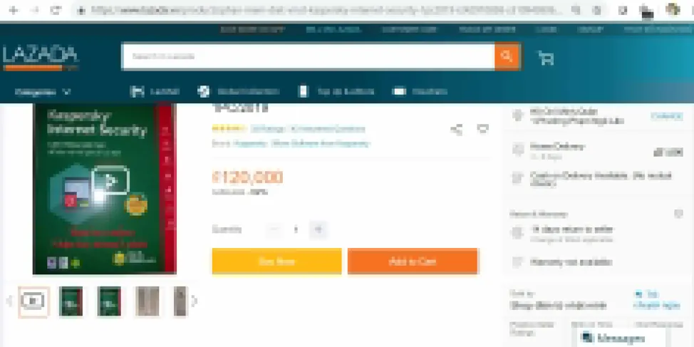 Bản quyền phần mềm bảo mật Kaspersky Internet Security ‘bản lậu' hoặc giả mạo được rao bán công khai trên mạng bán lẻ trực tuyến Lazada (Ảnh chụp màn hình)