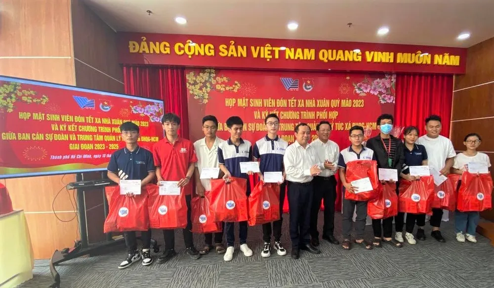 Năm nay, có 66 sinh viên ở lại ký túc xá đón tết, trong đó có 7 sinh viên nước ngoài. Mỗi phần quà được trao cho sinh viên gồm 1 triệu tiền mặt và phần quà trị giá 300.000 đồng. Ngoài ra, ngày mùng 1 tết, lãnh đạo Trung tâm Quản lý Ký túc xá ĐH Quốc gia TPHCM sẽ đến từng phòng và chúc tết và lì xì cho sinh viên.