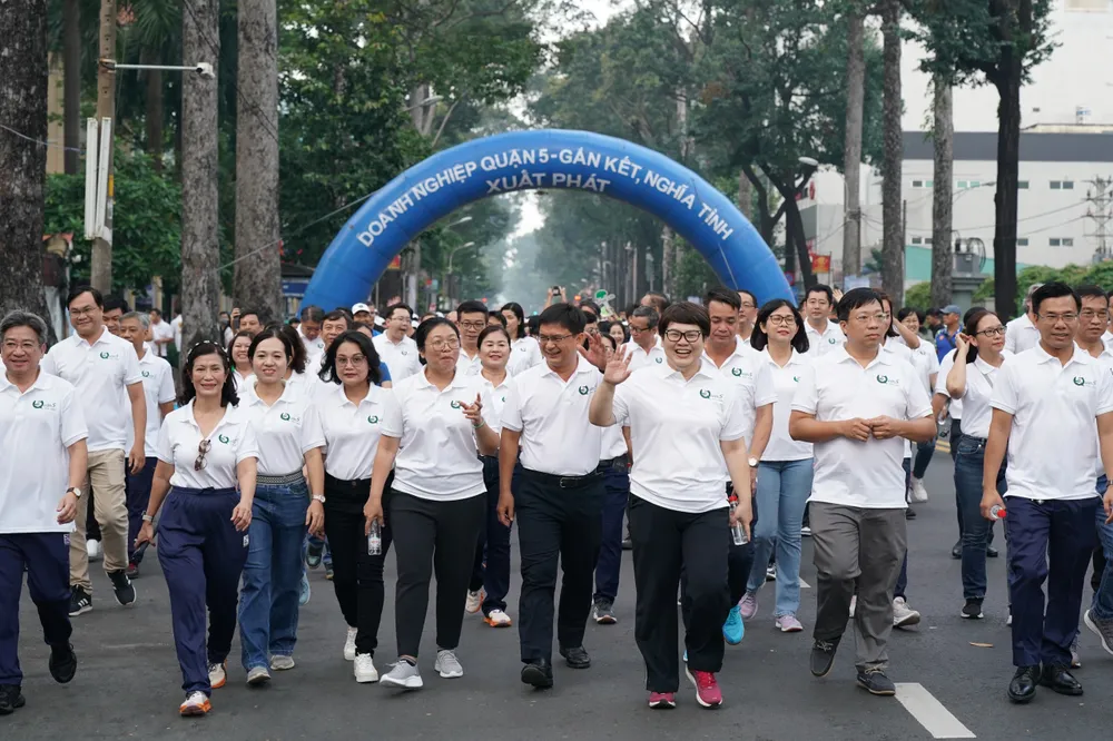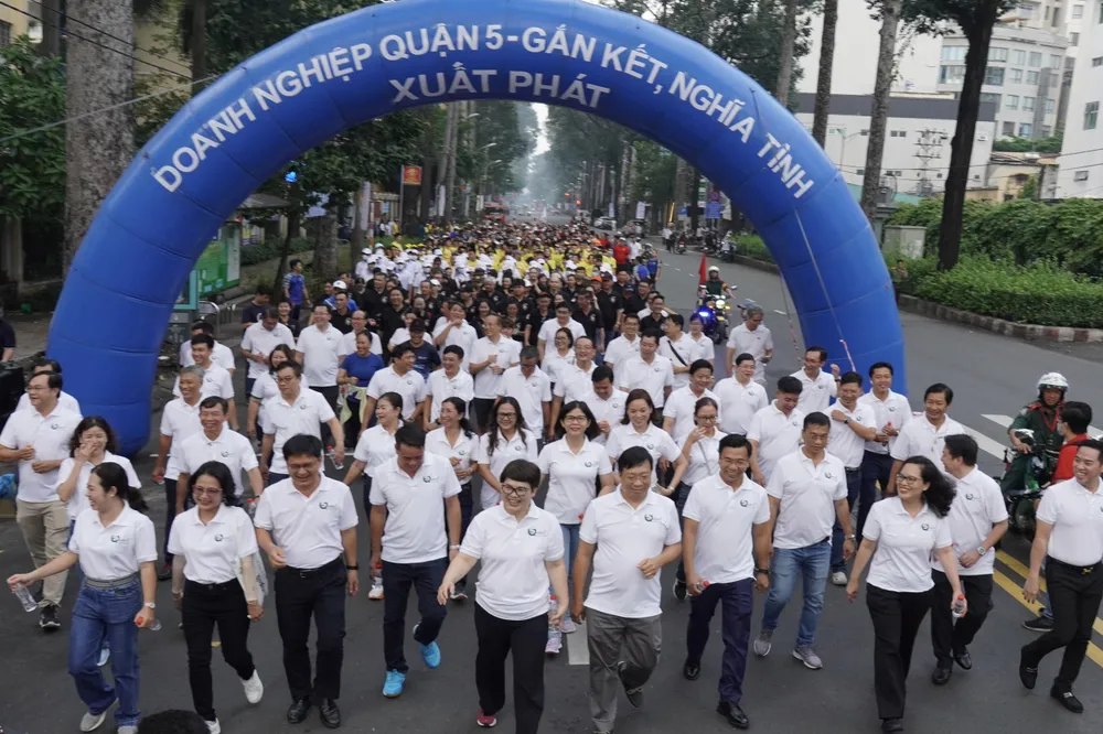 Khoảng 1.000 người gồm doanh nhân, người lao động cùng đi bộ gây quỹ ủng hộ các hoàn cảnh khó khăn trên địa bàn quận 5, TPHCM, với tổng số tiền hơn 1 tỷ đồng.