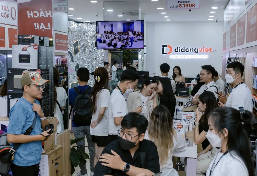 Theo đó, từ 0 giờ ngày 29-9, Di động Việt đã tổ chức sự kiện mở bán sớm iPhone 15 series tại 8 cửa hàng, trả máy cho gần 1.000 khách hàng đặt cọc và mua ngay. Đến 6 giờ sáng cùng ngày, Di động Việt chính thức mở bán trên toàn hệ thống, khách hàng không cần cọc vẫn có thể đến mua ngay.