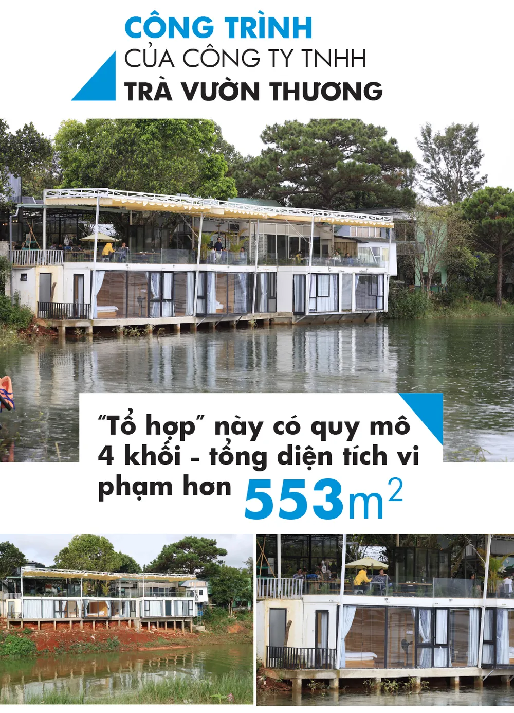 Với lỗi này, UBND TP Đà Lạt lập biên bản xử phạt hành chính 40 triệu đồng, yêu cầu ngưng thi công, tháo dỡ toàn bộ công trình vi phạm. Dù vậy, đến nay công trình vẫn đưa vào hoạt động kinh doanh, đón khách. |